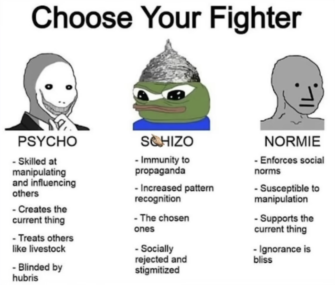 >>218501122Het kan 2 kanten op, of je wordt puur para, introvert daardoor en ingetogen en begint alles en iedereen te wantrouwen waardoor je een stille kluizenaar wordt. Of je wordt een verlichte strijder engel die onderneemt en doet en dan maakt het niet veel uit wat het is als het maar spraakwater geeft, dan ga je zeker nog neuken