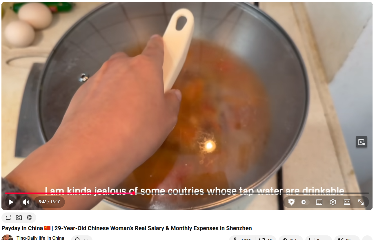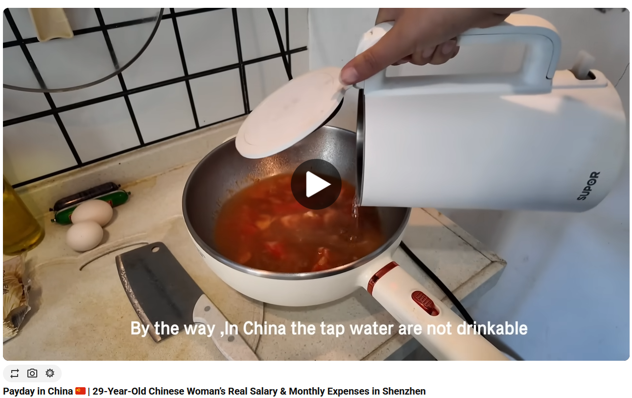 Tydligen kan man inte dricka kranvatten i Kina enligt hennehttps://www.youtube.com/watch?v=h_R3oDe7GWo