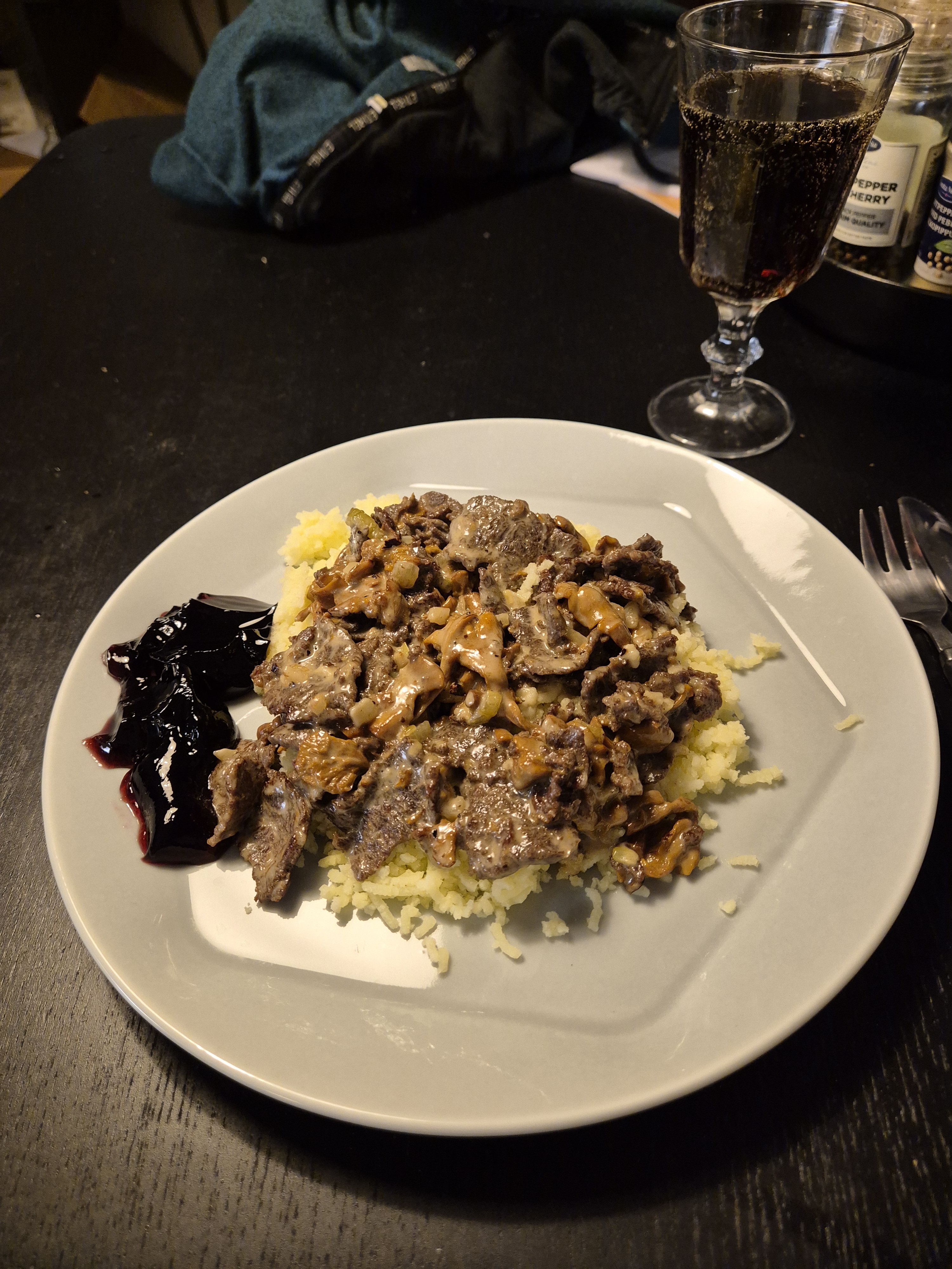 Idag jag äta Pepparbiff med pommes, bea och gul paprika. Och till det ett glas Coca Cola