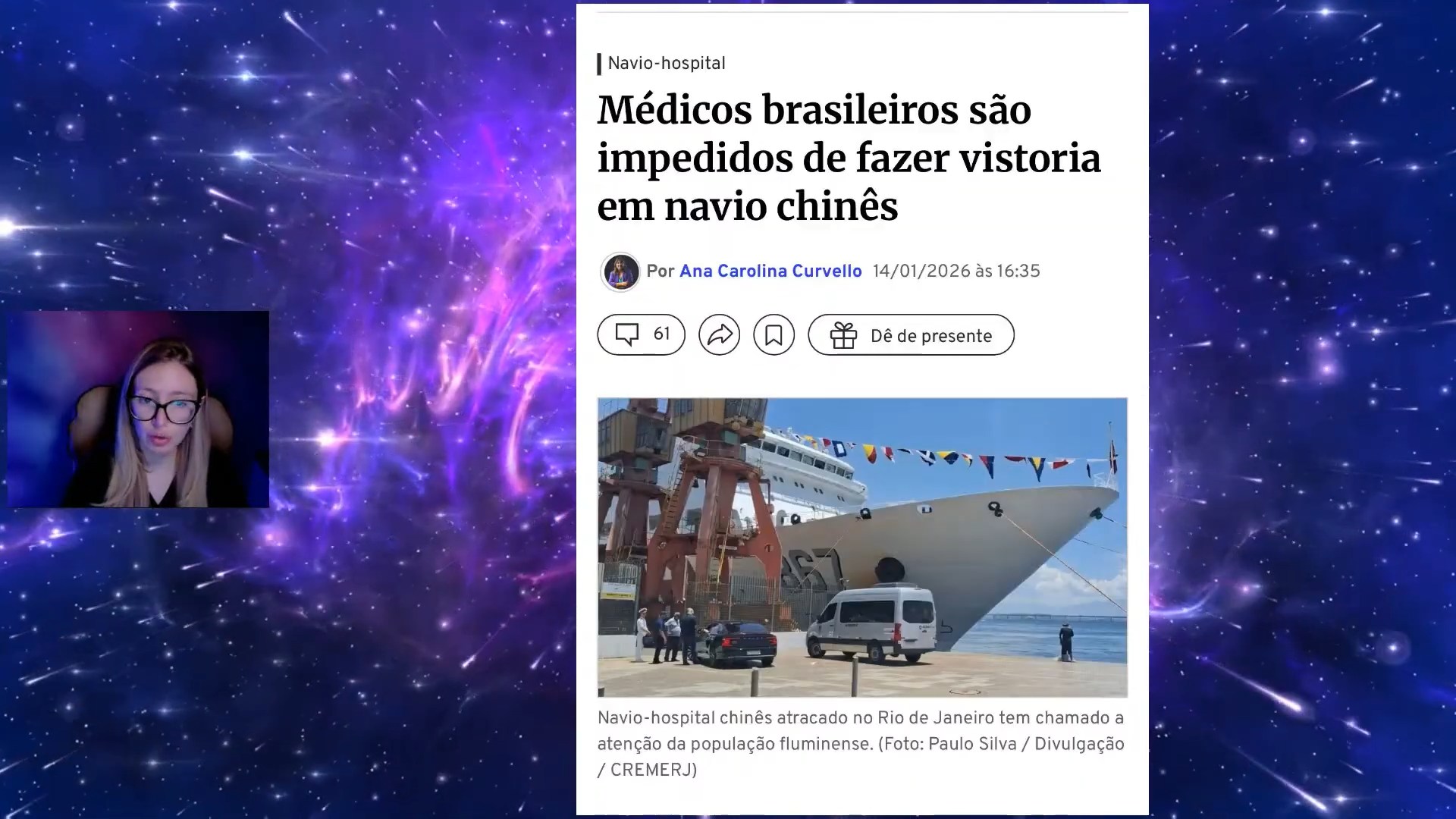 >Ao contrário do que se espera de uma embarcação médica padrão, o Silk Road Ark chegou ao Brasil equipado com uma infraestrutura robusta de vigilância. Segundo apuração militar, a estrutura externa do navio ostenta diversos sensores, antenas e radares.>Para os especialistas, essa configuração transforma o suposto hospital flutuante em uma poderosa plataforma de reconhecimento, capaz de coletar dados estratégicos, tais como a infraestrutura portuária do Rio de Janeiro, características geográficas detalhadas do litoral brasileiro e rotas marítimas sensíveis.>Essa capacidade de uso duplo — servir como hospital e como espião — é o que acendeu o alerta vermelho. https://www.terra.com.br/byte/desconforto-imediato-militares-brasileiros-identificam-capacidade-de-vigilancia-em-navio-chines-de-180-metros-que-ficou-atracado-no-rio-de-janeiro,2aed796d9601593c1be6c8fb110b2de3hz1iunv9.html