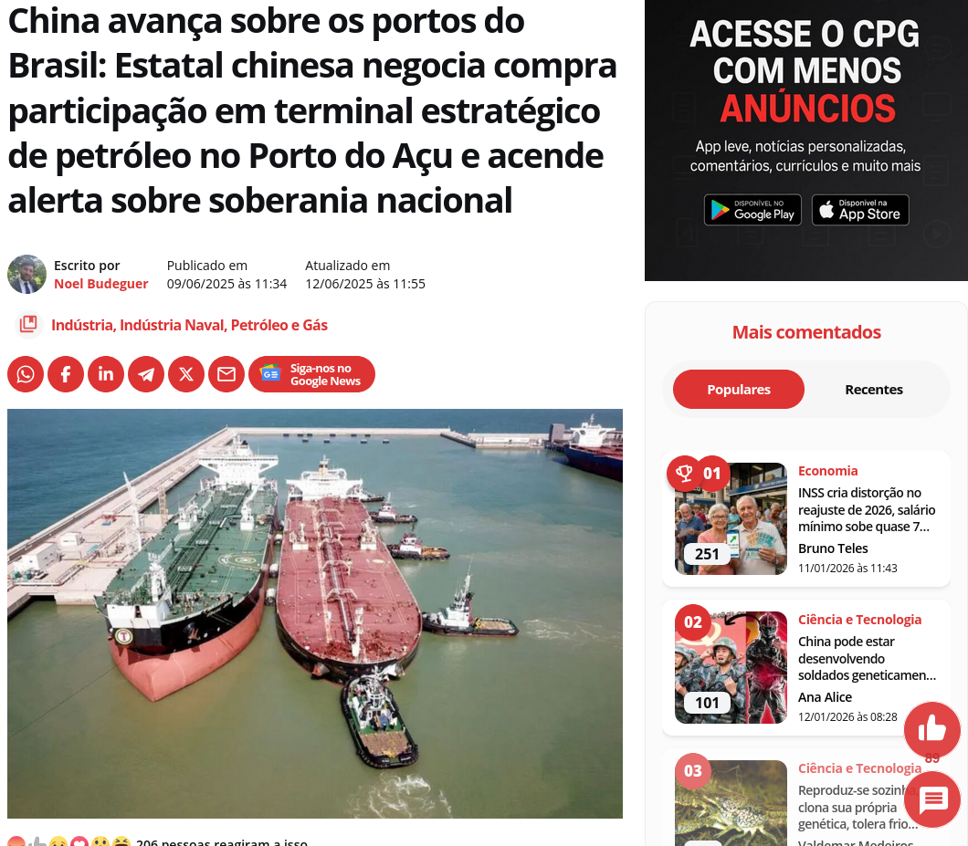 Burborineos and consperassaum in tournos dos lavio chinésis atracadous no hell d janégrus... pois é... =/A VERDADE POR TRÁS do NAVIO CHINÊS que chegou no Porto no Rio de Janeiro! ALERTA!https://www.youtube.com/watch?v=RhrZ5zOgeH4polémigas =/