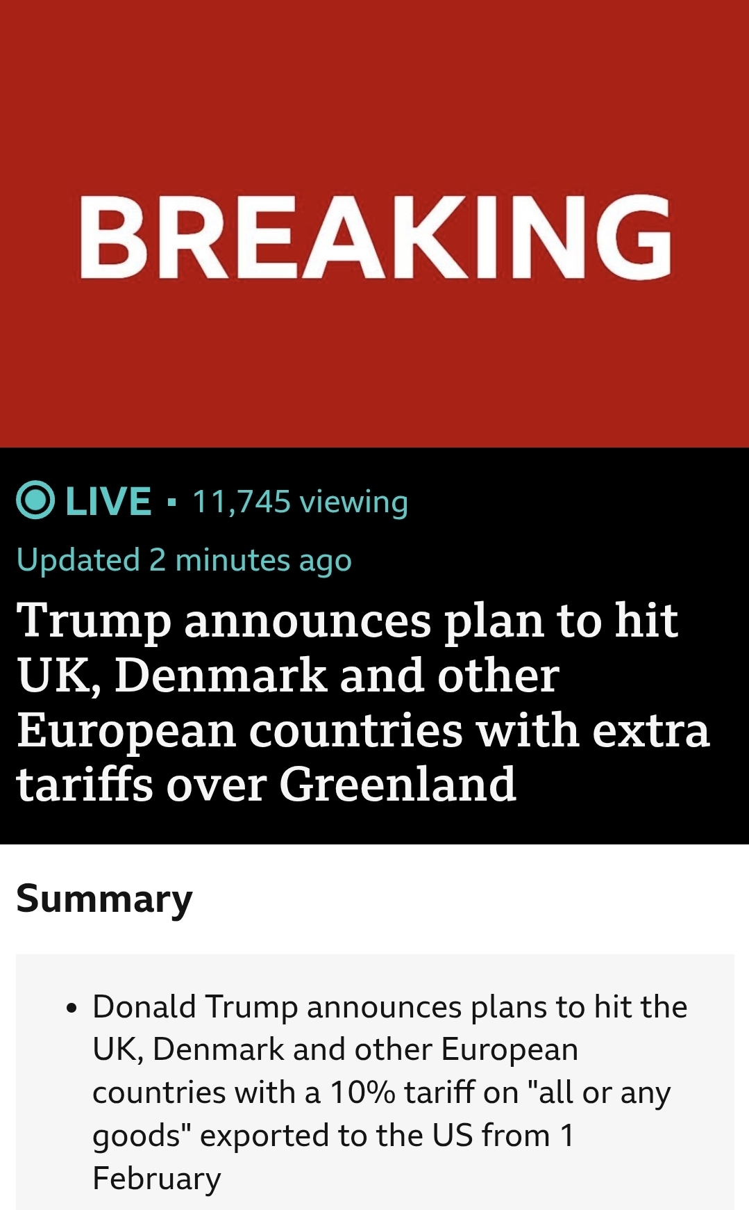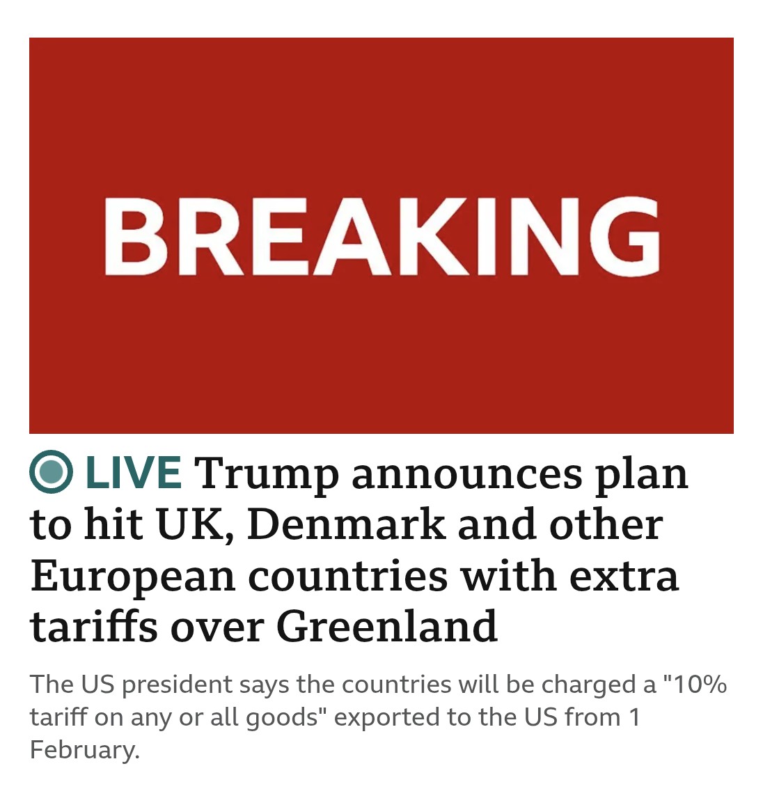 Trump vows extra tariffs for UK, Denmark and other European countries until Cheadle deal struck