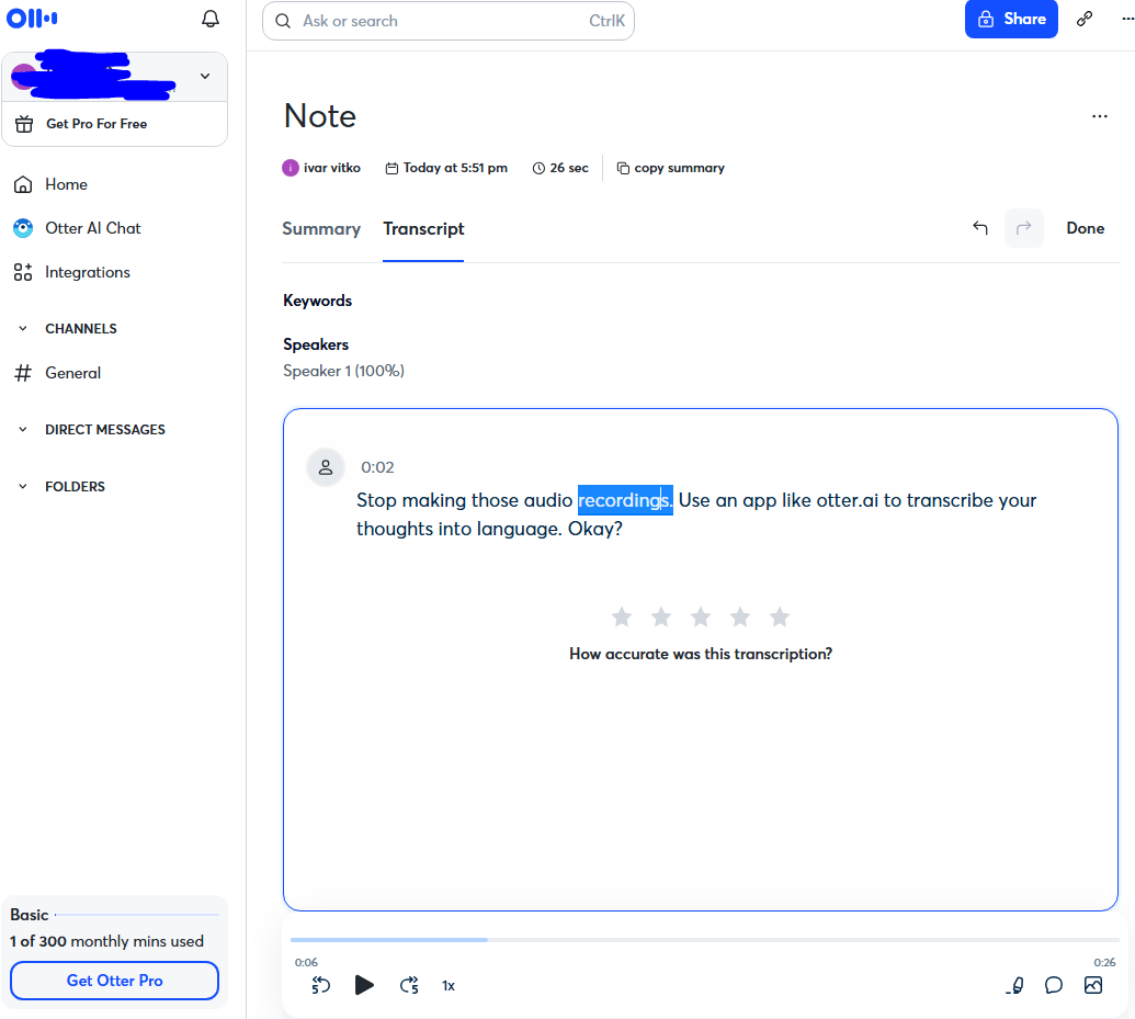 >>218584705Stop making those audio recordings. Use an app like otter.ai to transcribe your thoughts into language. Okay?
