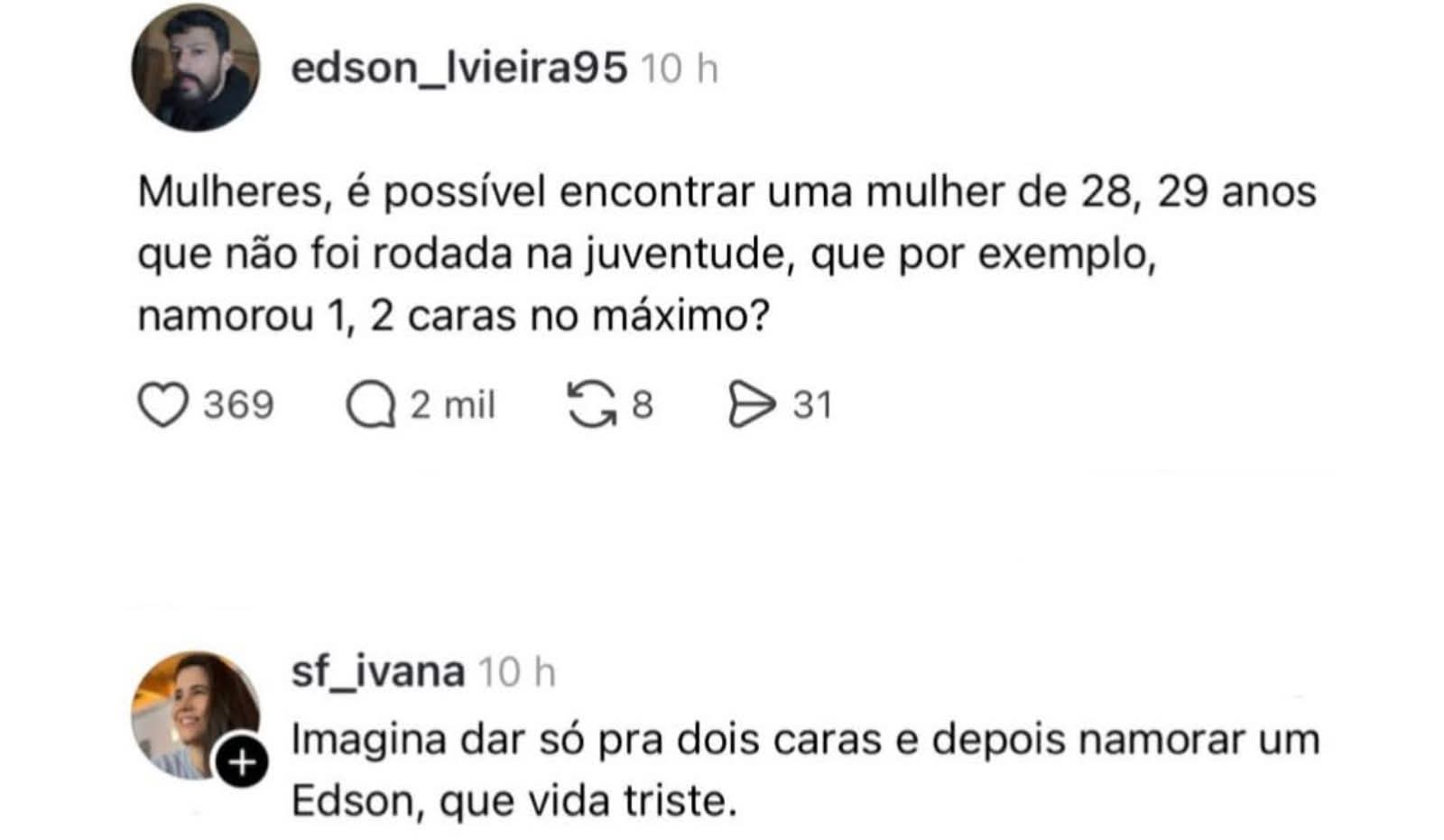 >a muié dá pra 30 no carnaval e depois quer amor verdadeiro, homem de valor, se nem valor ela temdroppou...