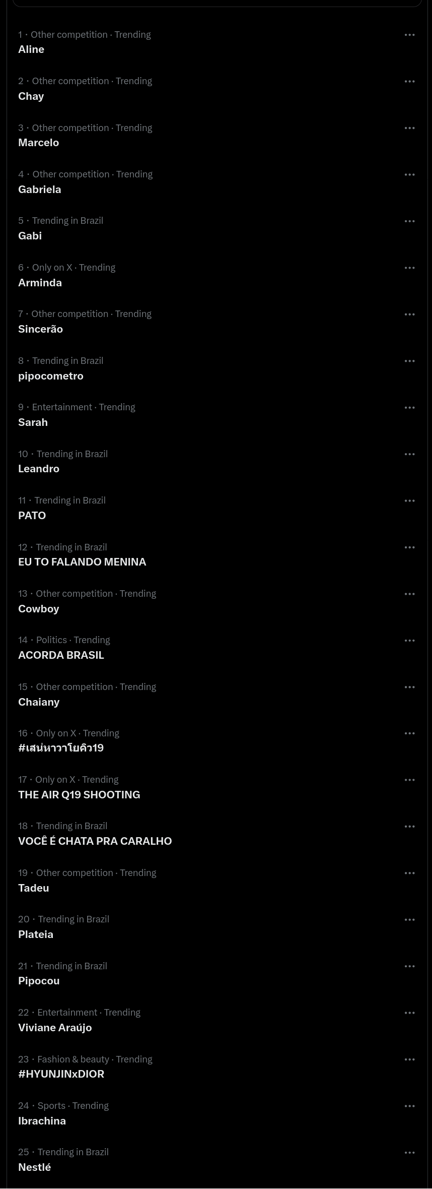 >>218600855those things are country dependent, in brazil it's 98% about the big brother tv show rn