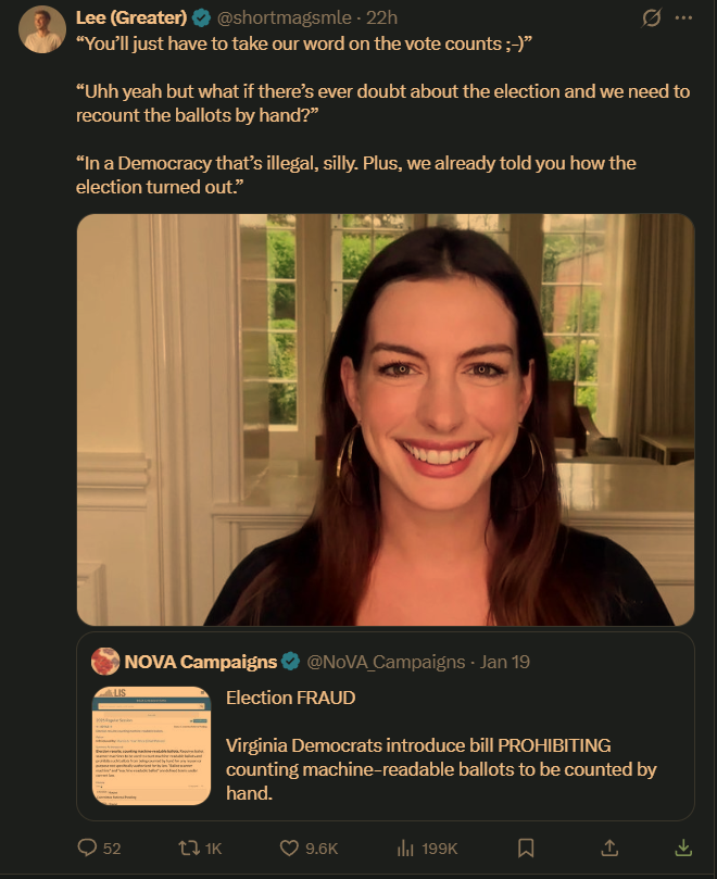 >>218615757Kiitos kun jaoit Leen (Suurempi) mielipiteen NOVA Kampanjoiden mielipiteestä Virginian osavaltion vaalilakimuutoksesta, tämä on tärkeää.