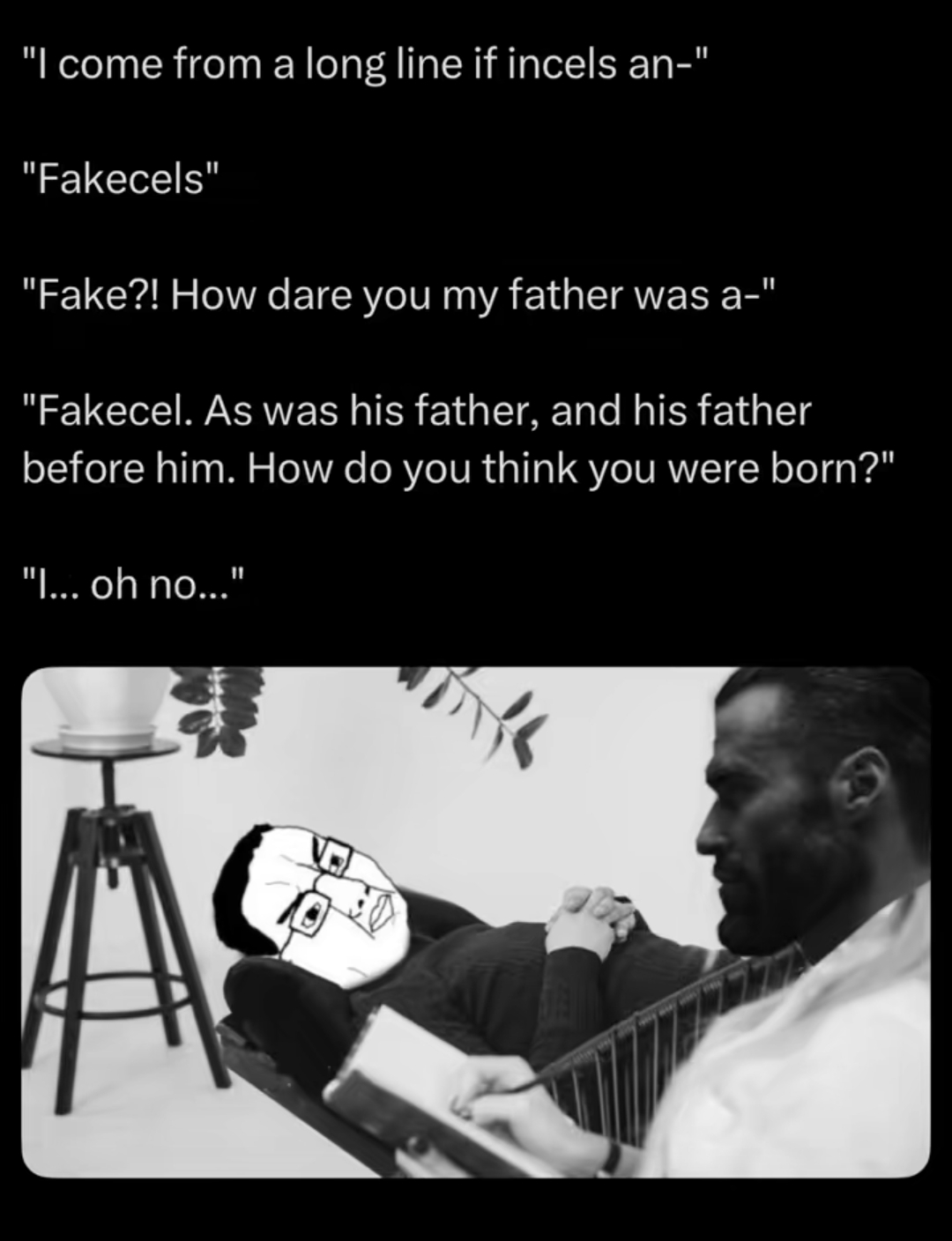 >lil bro is so hooked on 4cuck slopbthat he thought i meant x the boardjust had my biggest laugh for today