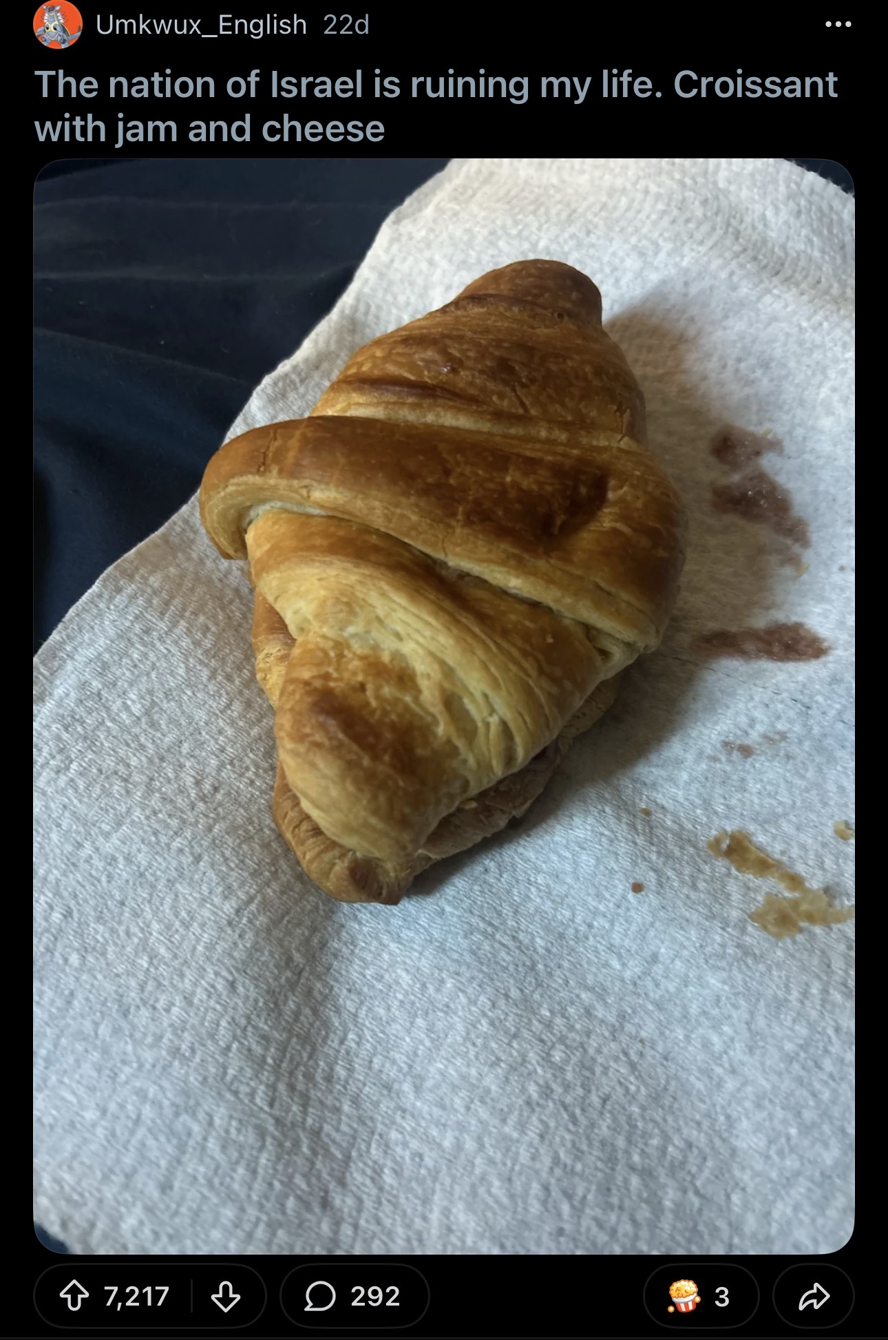 >>218696902תודה :)אני נותן לך אישור להשתמש בזה בפייסבוק>>218696862אני באמת לא מבין את הסכיזופרן הזה כאילו הוא יושב כל היום בטלגרם לקרוא דיווחים כמו מסכן