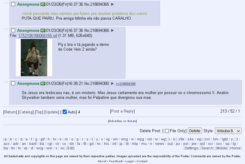 >>218685993Daí tamos beno estes... pq ser 1 boardsinhas gultural and brazileros eradinhos ser super gultural daí... pois é... =/