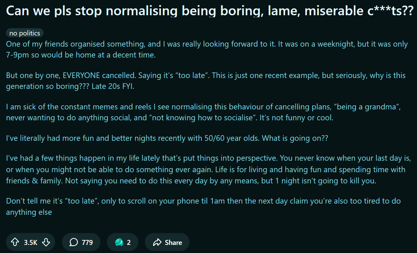 I was expecting zoomers to make fun of millennials one day, it happens to every generation. Never thought they'd be hating us for "how good we had it"