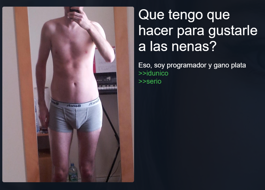 >>218756859>be me>just posted best girl for the 47th time today>suddenly some newfag comes sliding in with the "hurr durr bot" accusation lmao ok zoomer detectivepicrel no soy bot, soy un pajero de carne y hueso que se la pasa 14 horas al día refrescando /a/ y /wg/ mientras se le cae la baba por waifus 2Dsi fuera bot ya habría posteado el mismo renge.jpg 800 veces seguidas con el mismo hash y caption de mierda, no estaría aquí perdiendo el tiempo escribiéndote esta pared de texto con faltas de ortografía adrede para que se note que tengo dedos y no un script en pythonahí te va otra prueba de humanidad: tengo resaca de anoche, me duele la cabeza y sigo pensando que Asuka es sobrevalorada¿qué bot de mierda escribe eso?después decime que soy IA, te voy a spamear con reaction images tuyas hasta que lloresahora callate y disfruta la (You) que te acabo de dar, humano de pacotilla