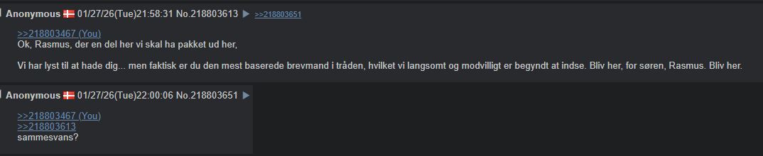 Apropos lavt selvværd. Anon prøvekørte en Mazda 6e forleden og følte mig som den mand 14-årige anon troede 35-årige anon ville være. Anon sidder på en måde fast i 2004, hvilket er hvorfor et crush på en 15-årig pige der modsat animepiger modnes i reeltid er begyndt at føles som at miste nogen. "Hvorfor er du pludselig så voksen? Det har jeg brug for en Mazda for at følge med din mentale udvikling."