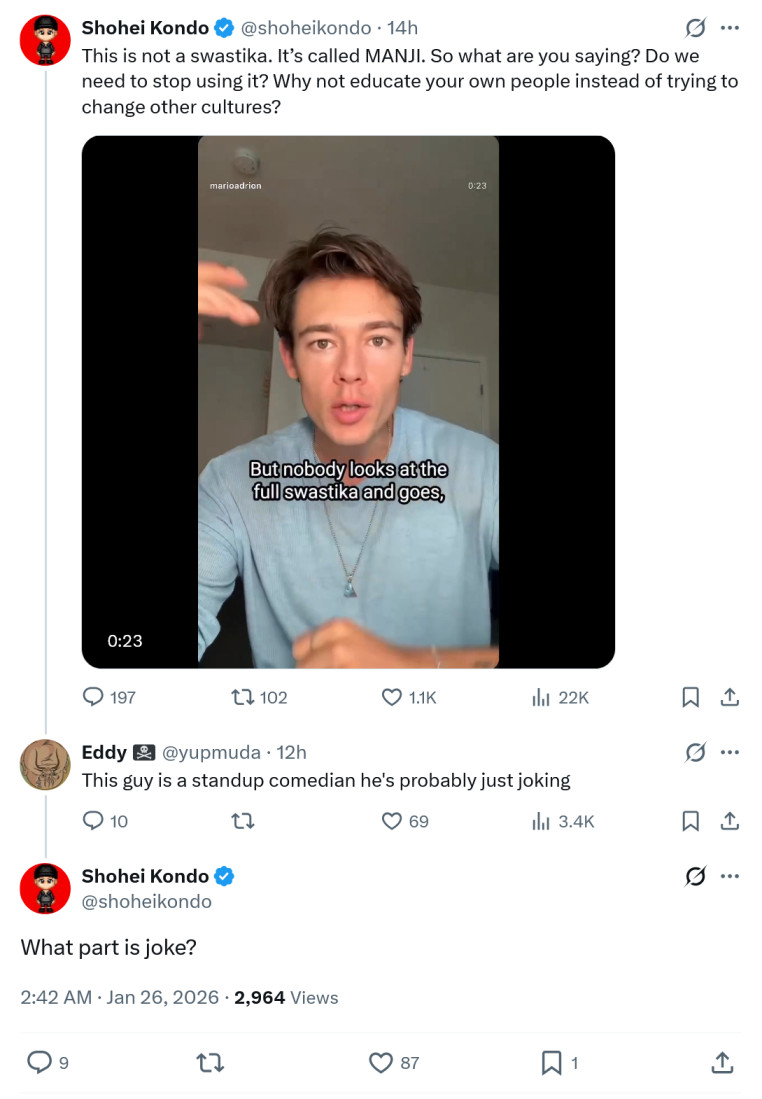 >>218759019that guy is not japanese, there are no words in japanese, so there are no spaces between words. the fact that he can understand the concept of word and doesn't write everything in a single word like this "thisisnotaswastikaitscalledmanjisowhatareyousaying?" outs him as a westerner larping as a japanese