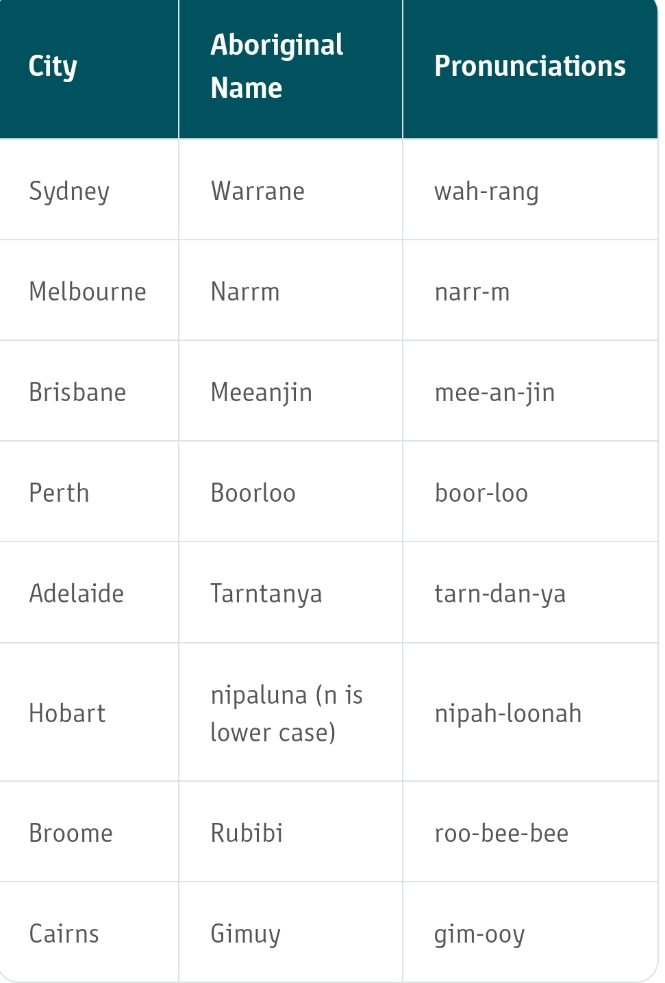 >>218761178jeets also count in the invasion>>218761253It's the names of the land that the cities are onMostly recorded in the early 1800s because all the abos that lived there are extinct now