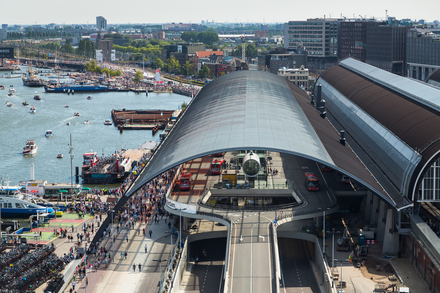 This expansion of Amsterdam central station was recently finished. It's an elevated bus terminal.