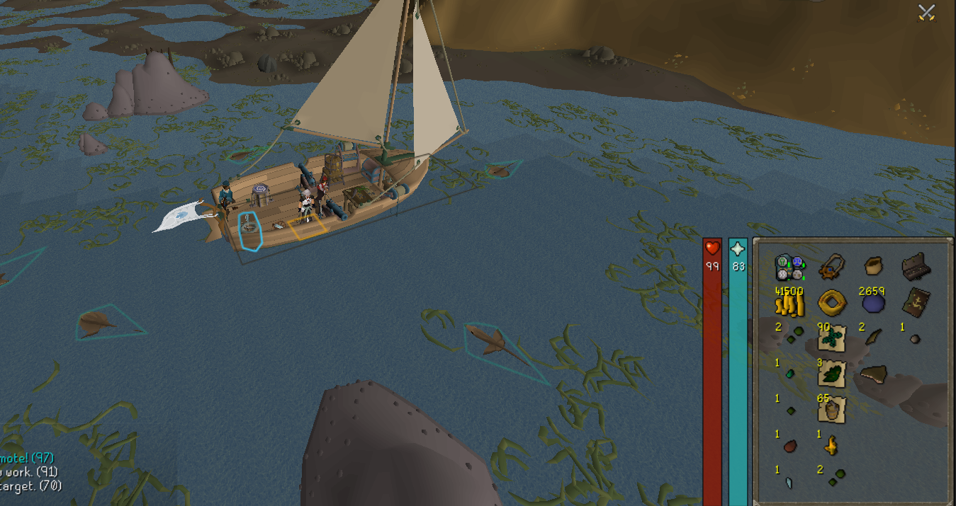 olen taso 84 seilori kyvyssä. kohta hörpään horisontin houkutus oltta ja menen saarelle joka vaatisi tason 87 seilori kyvyn, mutta ennen sitä tapan rauskuja niinden rausku väkästen takia jotta voin rakentaa venhooni puuvilla troolari verkon
