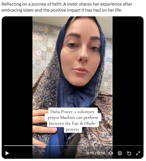 It says embracing Islam, meaning she’s a European convert not a Arab, probably married to a Moroccan or a Somali or something