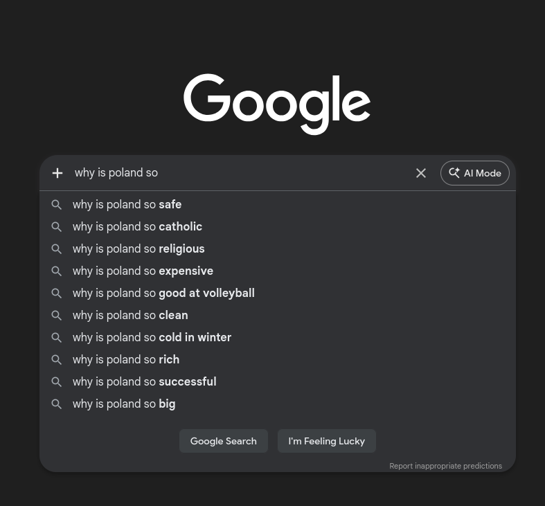 >>218771145if i type why poland in turkish the top searches are>why poland doesnt use euro>why poland doesn't give visa>why poland doesn't give visa appointment>why was poland invaded
