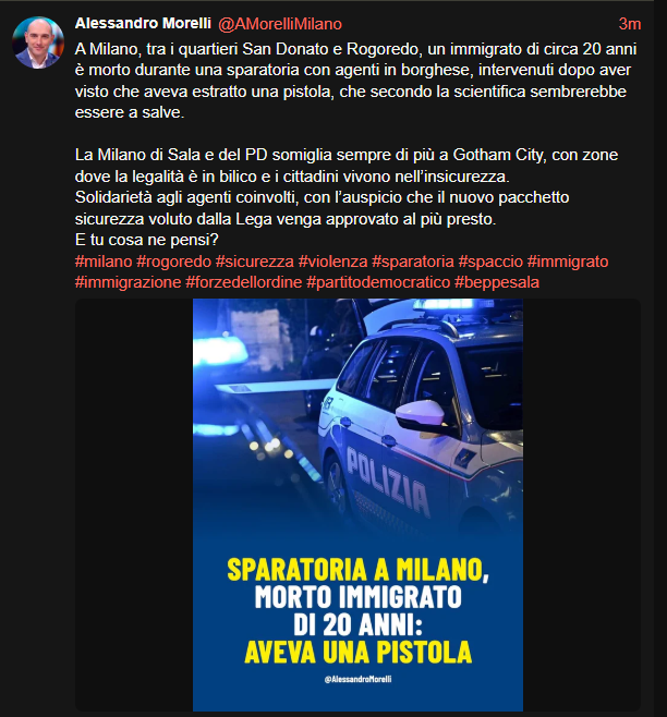 >>218772575>++ Sparatoria a Milano, morto un ventenne ++