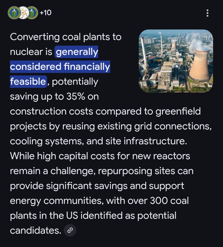 >>218776472>retrofit coal plants into nuclear plantsWhy not retrofit bicycles into airplanes while we’re at it?