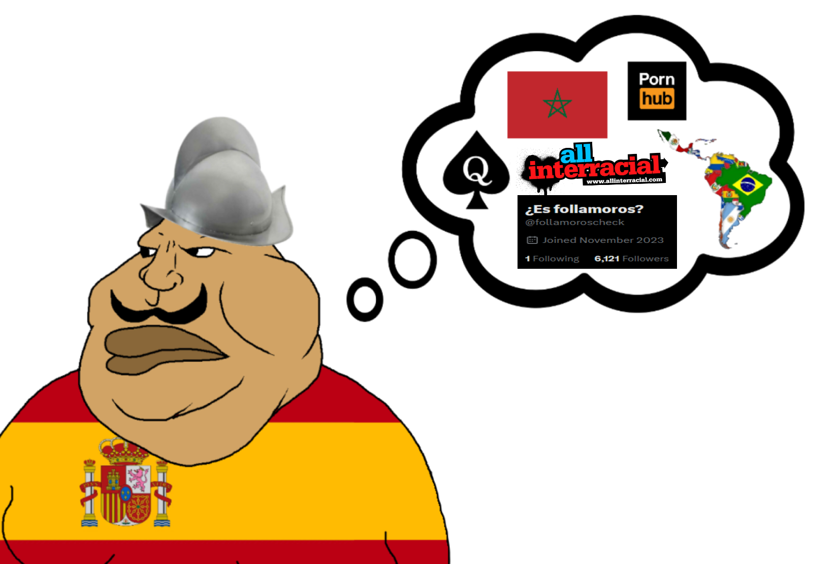 >>2187789629/10 i interact with a Spaniard he beats me over the head with a cross, verbally abuses me, and DEMANDS I immediately convert. They like to imagine themselves conquistadors still because they write mean comments about Moroccans online.I know conquistadors were more often than not elite business men in it for the profit and nothing but the prophet, but the rest of Spanish society was INSANELY christian at the epoque, they attributed their success in pushing back the north Africans out of Iberia to their faith, they really thought they were the sword of Christ and enjoyed his divine favor. I think they still do, many events have happened since and before the reconquista but it's all Spaniards think about to this day still, it's all they talk about, morning, noon, and night and on Sundays.