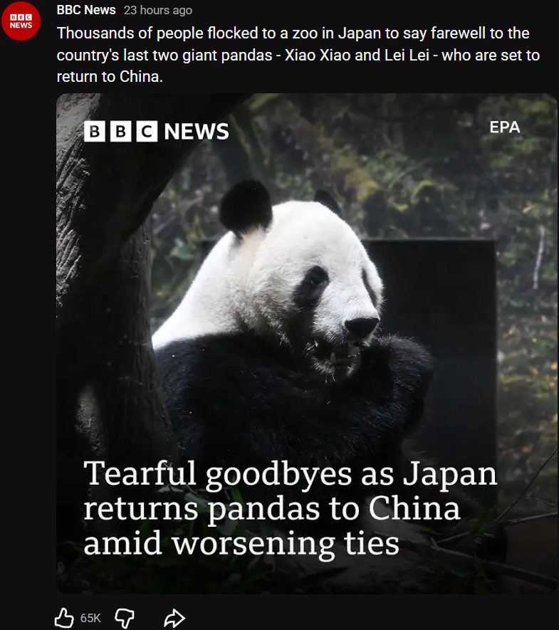china is just using panda for political blackmail, japan shouldn't back downt. china