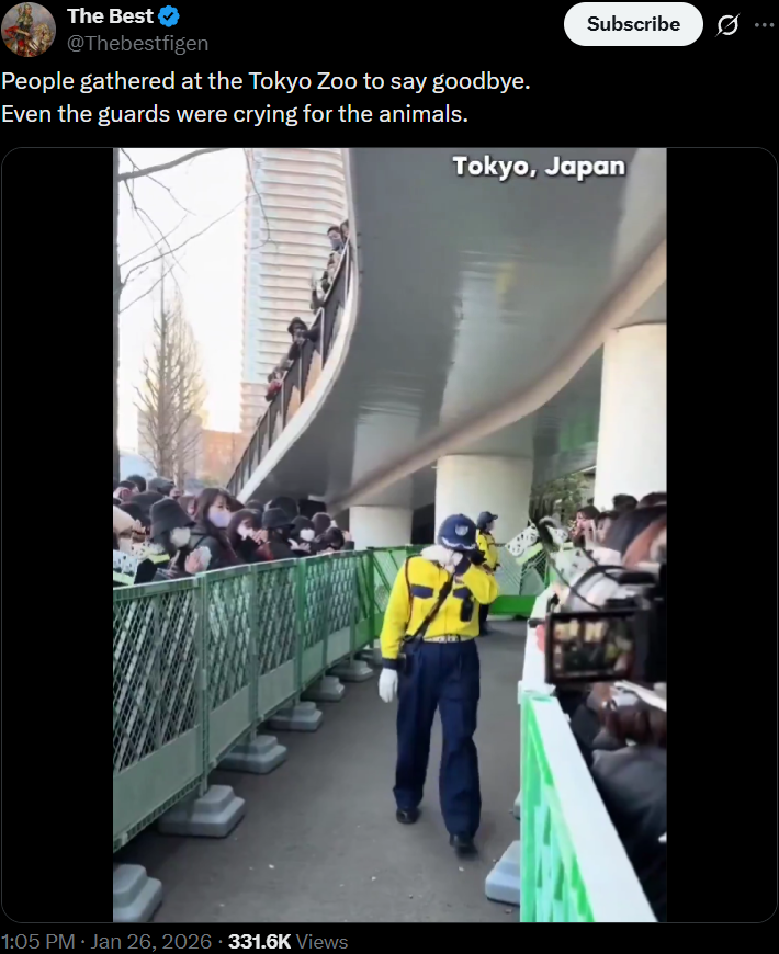 >>218791434Even the guards were crying. Seems like 99% of the people there to see the panda and crying there were women.