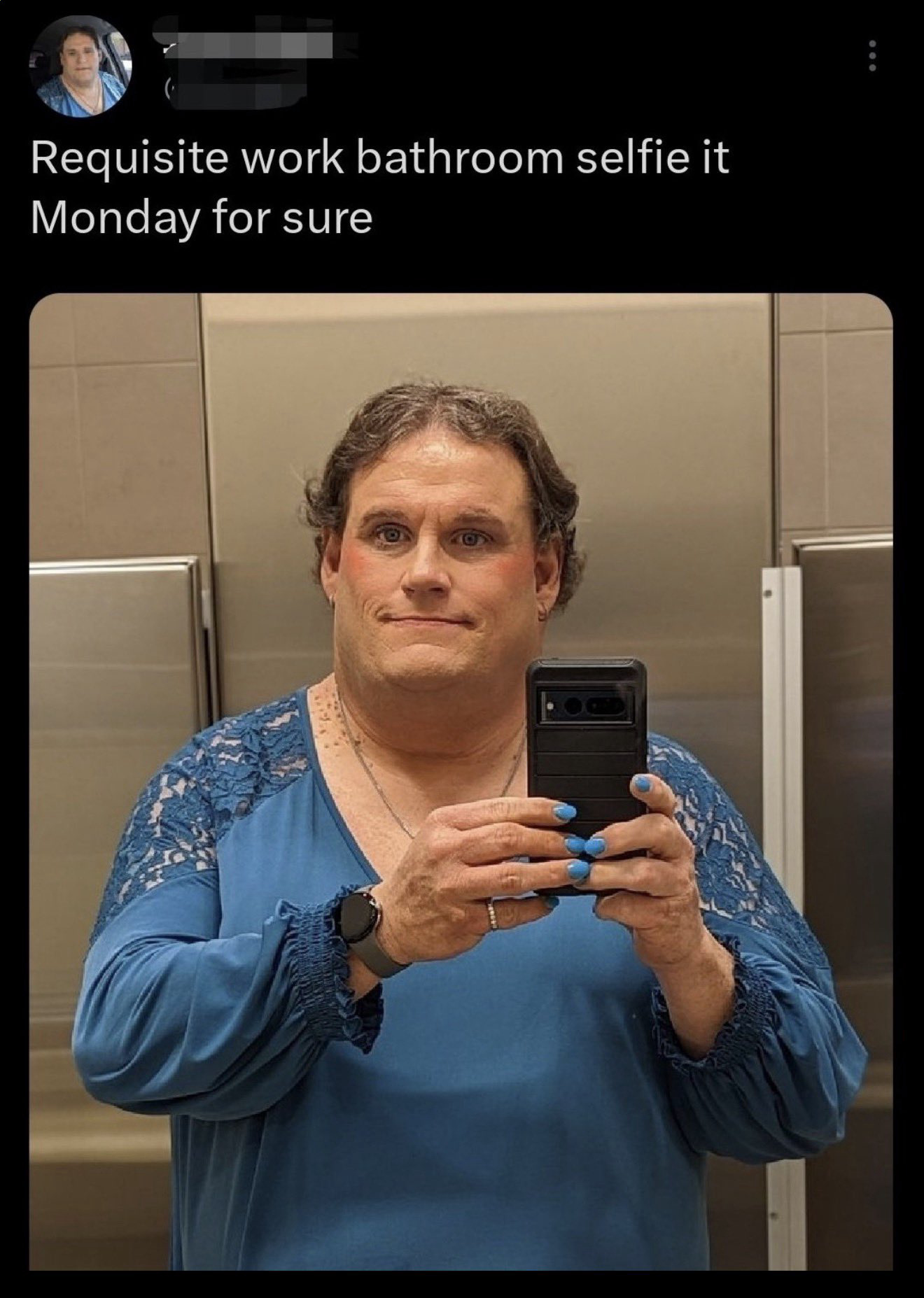 Probably shouting into the void on twitter while reflected at how he's ruined his life