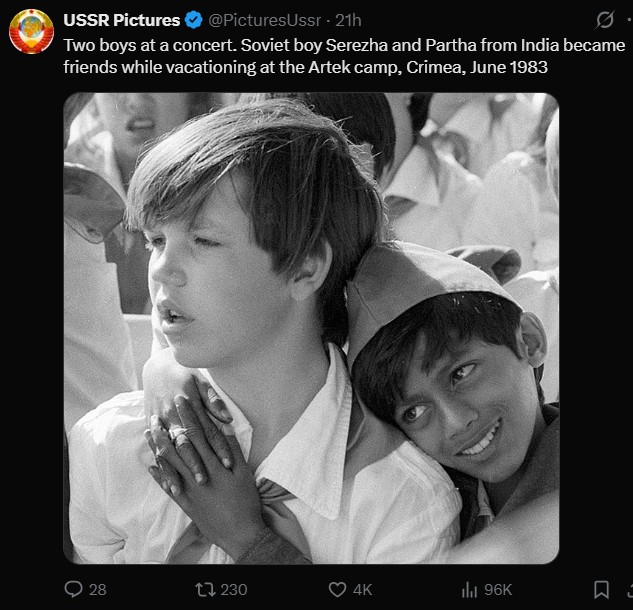 I find these forced multiculti photos hilarious when everyone in the USSR was racist even amongst each other. My granny saw a nigger for the first time on TV and hates them ever since.