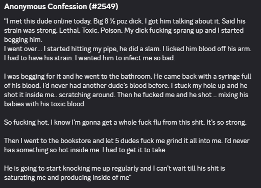 >>218811274Do you got the one where he talks about how he plans on waiting until his wife is away on a trip so he can invite a bunch of guys over to poz his unconscious son