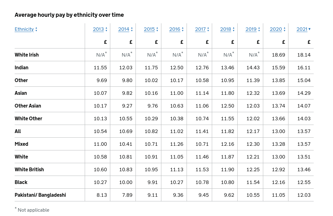 >>218811279Tech jobs I guess.Did you know that in 2021 in the UK, ethnic Indians earned more money, on average, than White Brits. Only White Irish people in the UK earned more than ethnic Indians. Pic related, right-most column.Source: https://www.ethnicity-facts-figures.service.gov.uk/work-pay-and-benefits/pay-and-income/average-hourly-pay/latest/