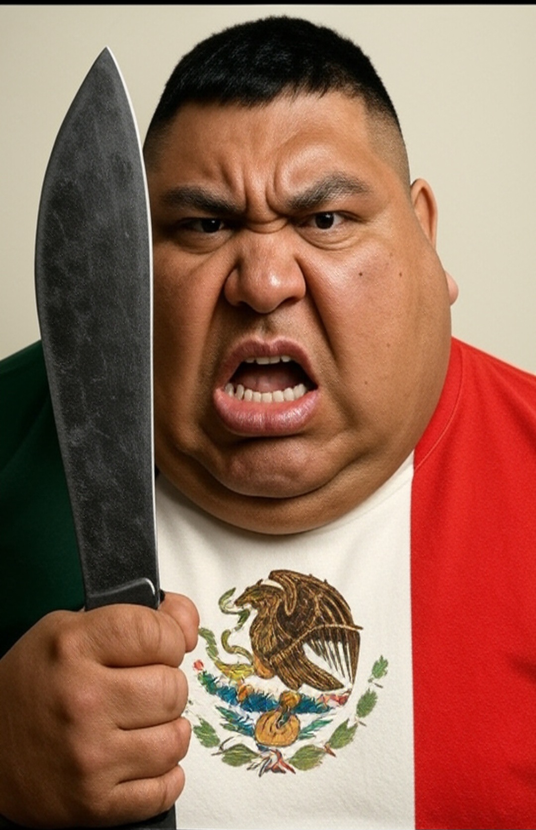 I used to make fun of Mexicans, but I suddenly realized that if this guy holding knife shouts "Japon es CAGADA!!!" at me in real life, I would get so scared and maybe piss in my pants. I wish Mexicans are not so mad at me.