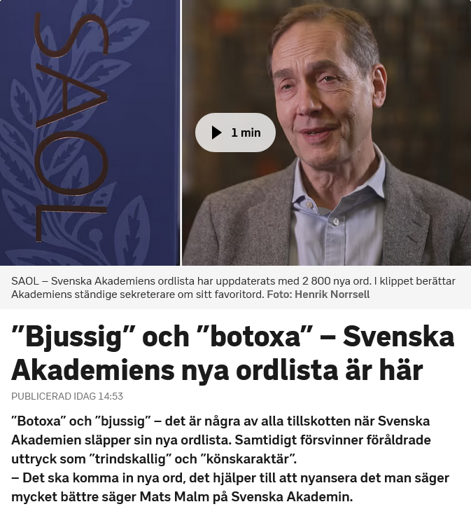 Här är exempel på nytillkomna respektive strukna ord