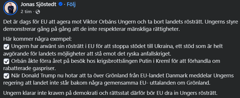 Det är fullt befogat för EU att agera mot wannabe diktatorn Orban. Ungen räknas inte längre som en fullvärdig demokrati på grund av Orbans korrupta och auktoritära styre.