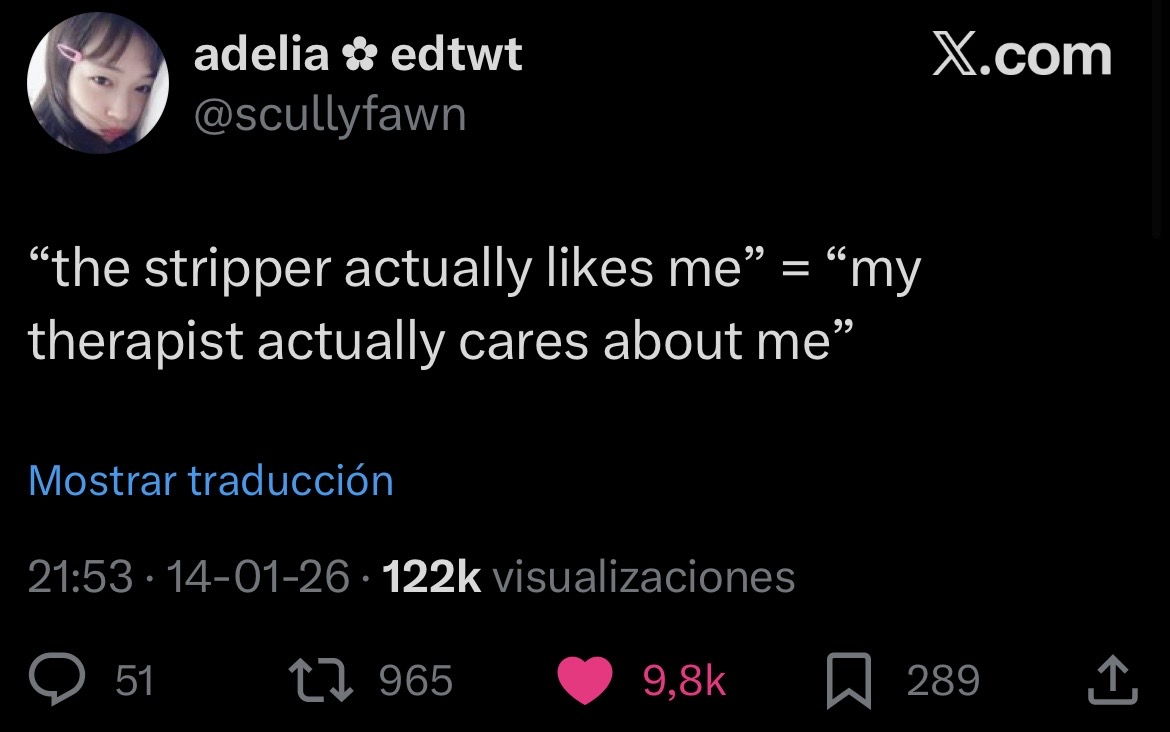 >>218819644>Proof that women go to therapists to trauma dump and verbal diarrhoea instead of muh mental health I don't know about therapists but psychiatrists are medical doctors who'll look for physiological causes for your depression as well instead of your mother, and actual clinical psychologists work on the ABC (Affect, Behaviour, Cognition) to improve your mental health, neither of them are supposed to "care" about you beyond the concern for your propensity to self-harm, if you were doing/have done/would do that