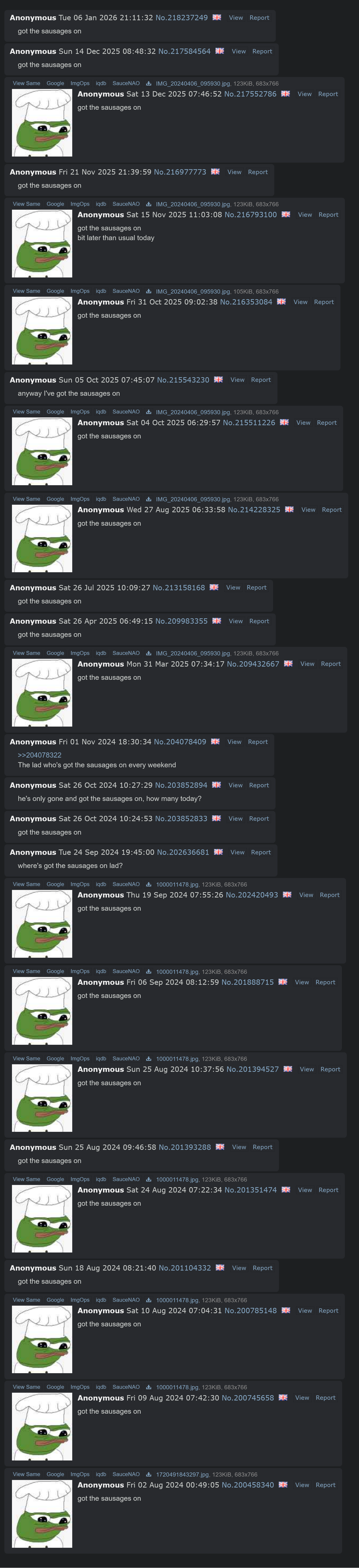 >>218820597this nigga eating sausageshttps://desuarchive.org/int/search/text/%22got%20the%20sausages%20on%22/country/gb/page/1/