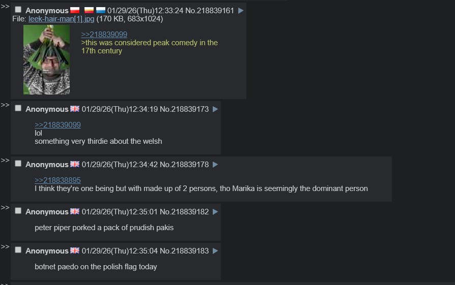 read about in the 1600s when some welshmen in london were celebrating st davids day by putting leeks in their hats so a butcher took the piss by putting one in his hair and they had a fight and the welshmen got chased into the thames by an angry mob lol