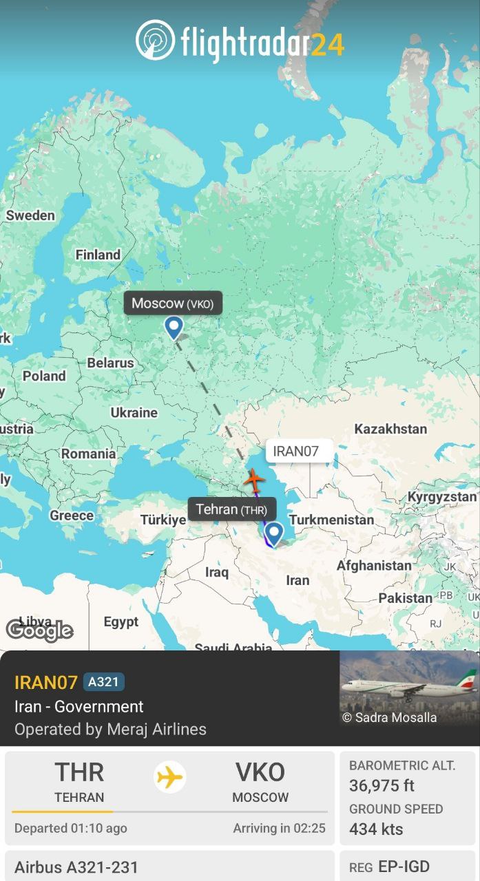 מטוס ממשלתי איראני המטיס בד"כ את בכירי המשטר האיראני, יצא מטהרן למוסקבה לפני זמן קצר.