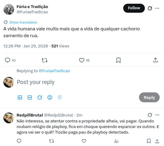 Esse caso do cachorro só expôs mais uma vez o que ninguém quer aceitar: a empatia uma humana SEMPRE foi seletiva e a moral da massa não serve como bom direcionador de porra nenhumaPro cachorro morto: dias de discussão e comoção, pros bilhões de animais mortos e esquartejados a todo momento pra virar churrasco: não sobra nada