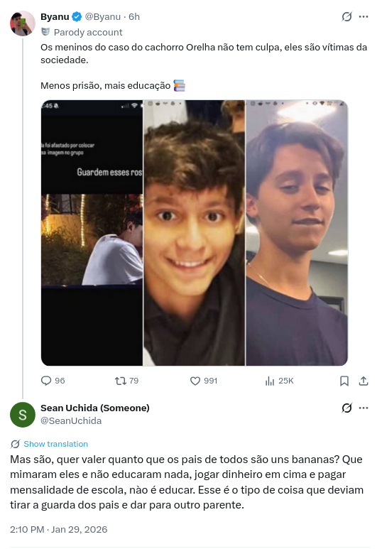 >>218844653Não divulguem a imagem dos assassinos do cachorro Orelha!