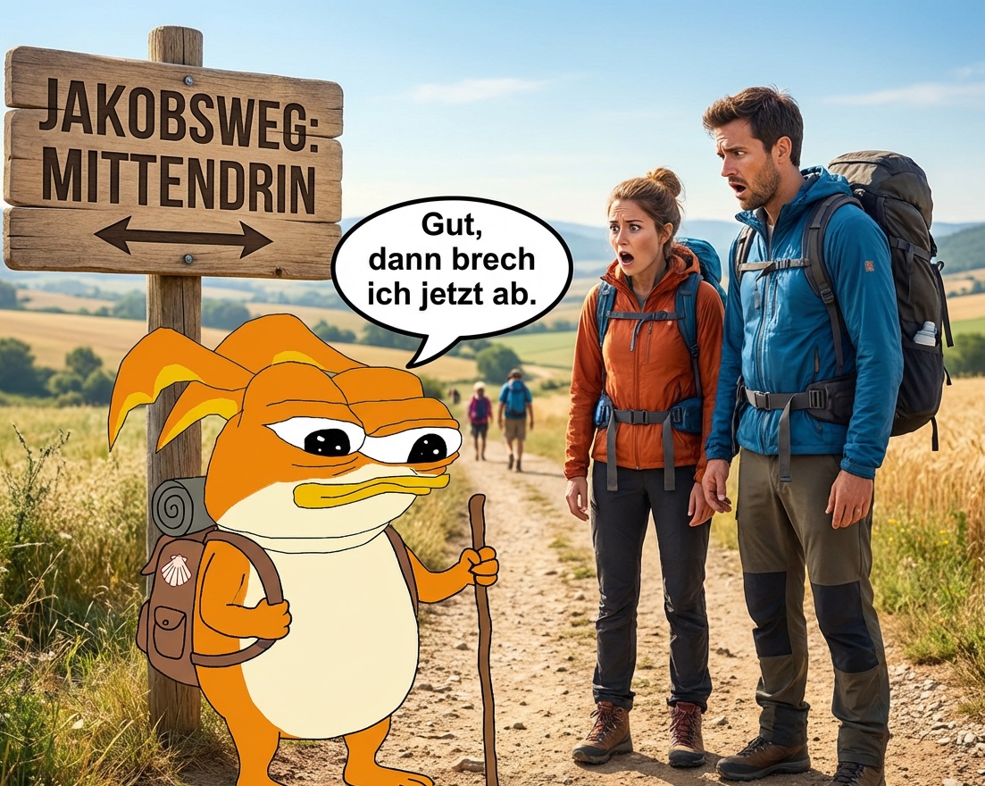 >>218847608Wette du machst eh wieder auf halbem Weg kehrt, weil es draußen kalt ist oder dir die Füße wehtun oder du dich im Wald langweilst