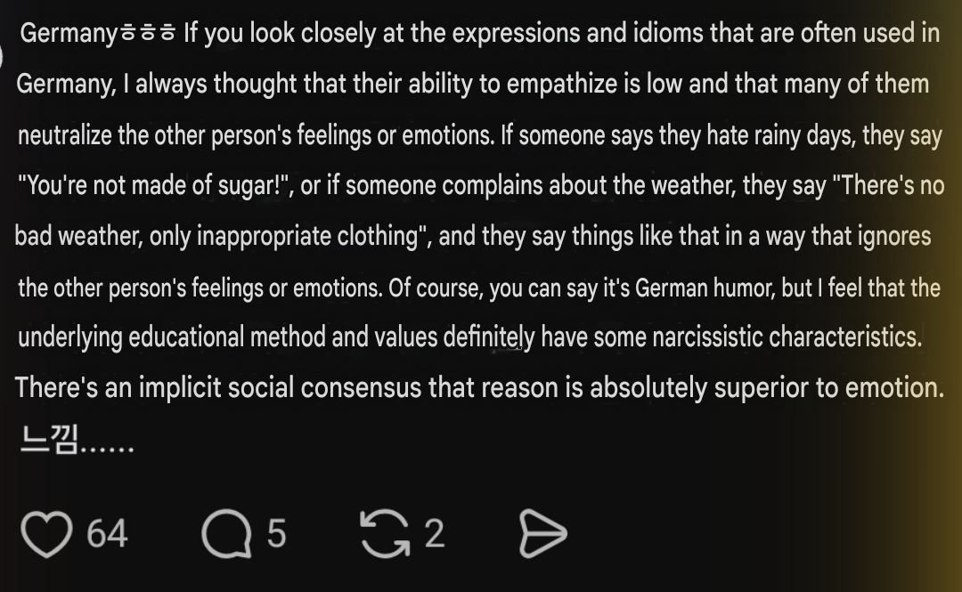 >>218906057do you find this too? i find watching korean news kind of unpleasant and stressful, whilst japanese news is calm and nice, transfixing almost. it's the difference between the news of "just another asian country" and the special country.
