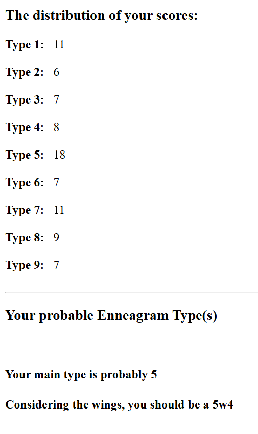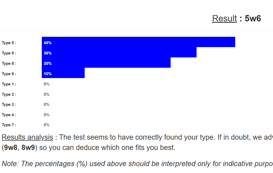 >>218887033or apparently I'm a 5w6this shit seems even dumber than mbti in terms of the questions asked