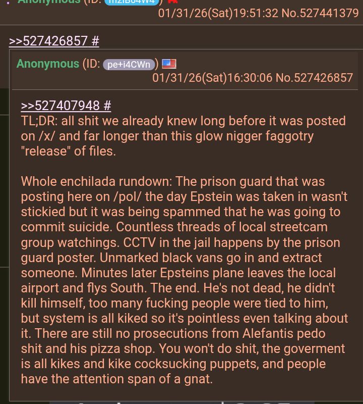kanimer, es ist alles wahr.JEDER der im Zusammenhang mit Epatein erwähnt wurde, ist ein Kinderficker und auch Kindermörder, ich habe jetzt alles gelesen auf /x/ ich glaube alles und ich kanimerhttps://i.4cdn.org/x/1769852288434536.png