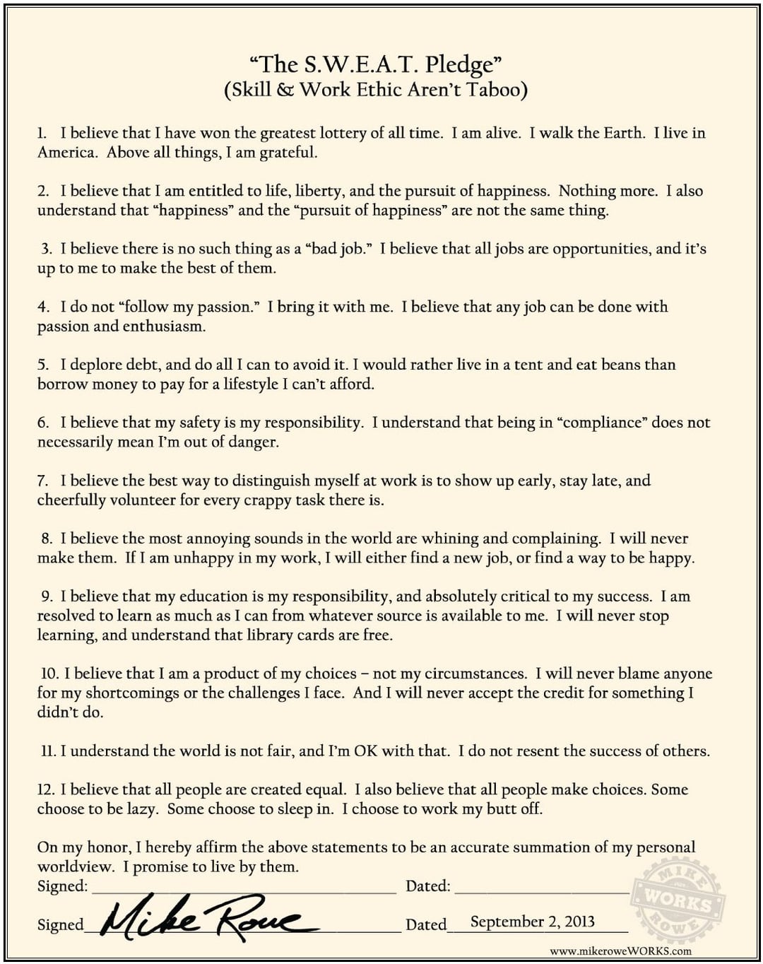 Why haven't you taken the Mike Rowe pledge?