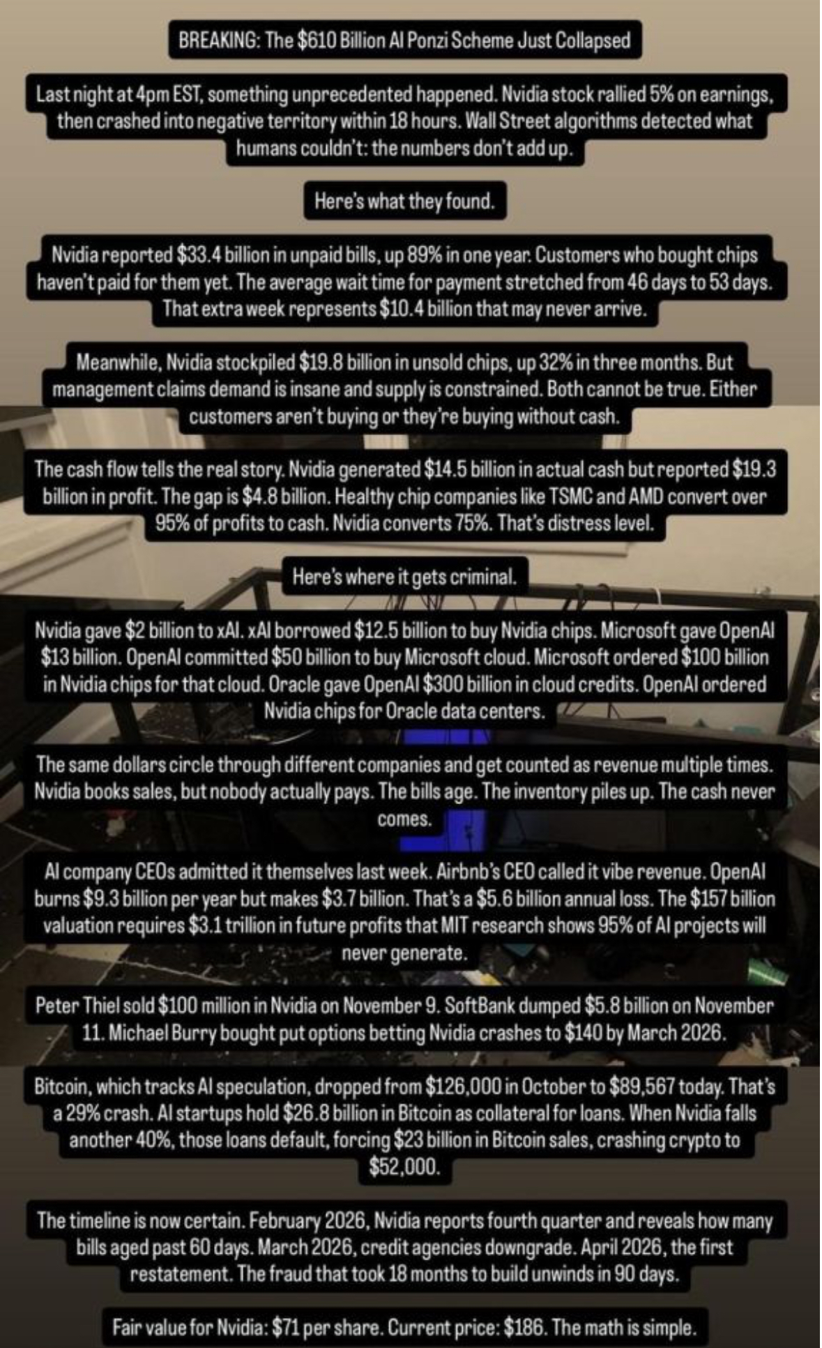 >>218959363ironically, it’s all inflated and when they can’t deliver, it’s brings the house of cards that is the american (and thus world) economy tumbling downread this if you can be arsed. most of their value is from orders they can’t complete