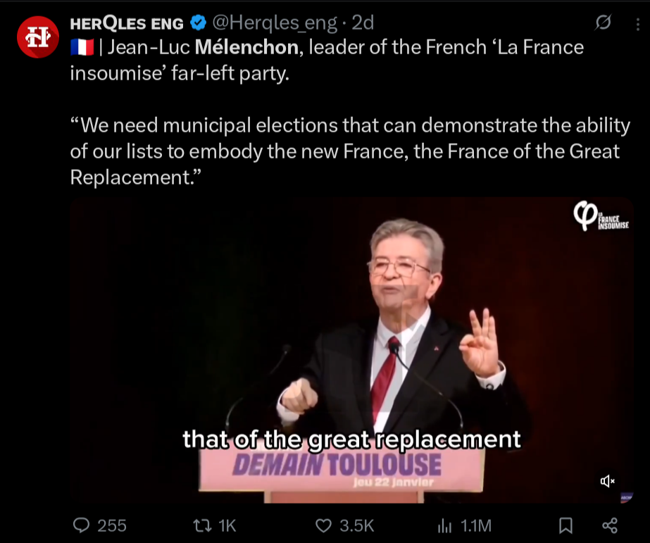 The Great Replacement (French: grand remplacement), also known as replacement theory or great replacement theory,[1][2][3] is a debunked[4][5] white nationalist[6] far-right conspiracy theory[3][7][8][9]