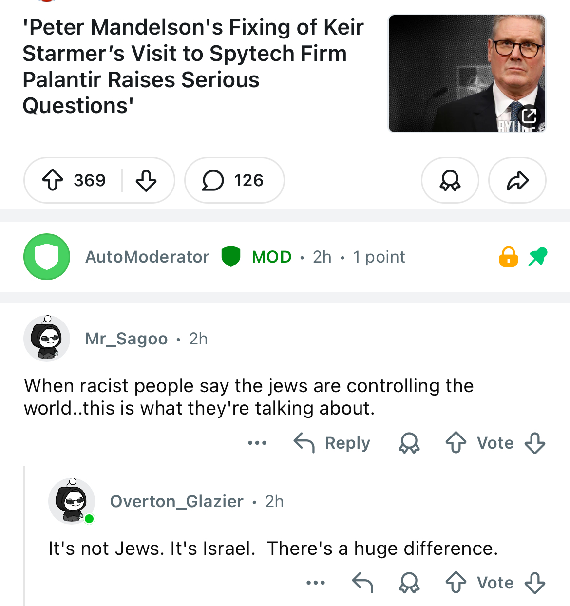 I used to get banned on the r/ukpolitics subleddit for talking about the Mendelsohn-Epstein connection for 'homophobia' but now the whole frontpage is full of it. every mod on leddit is a nonce protector.