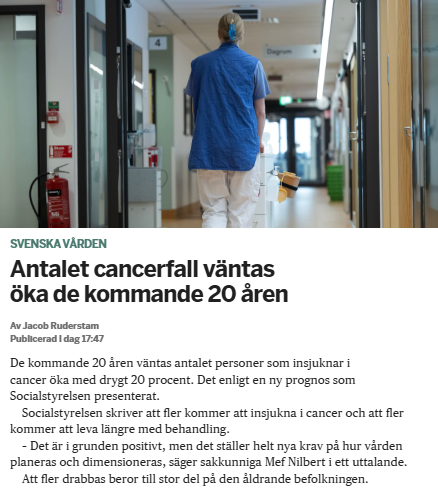 >>218997009>Socialstyrelsen skriver att fler kommer att insjukna i cancer>>Det är i grunden positivthelt sjukt