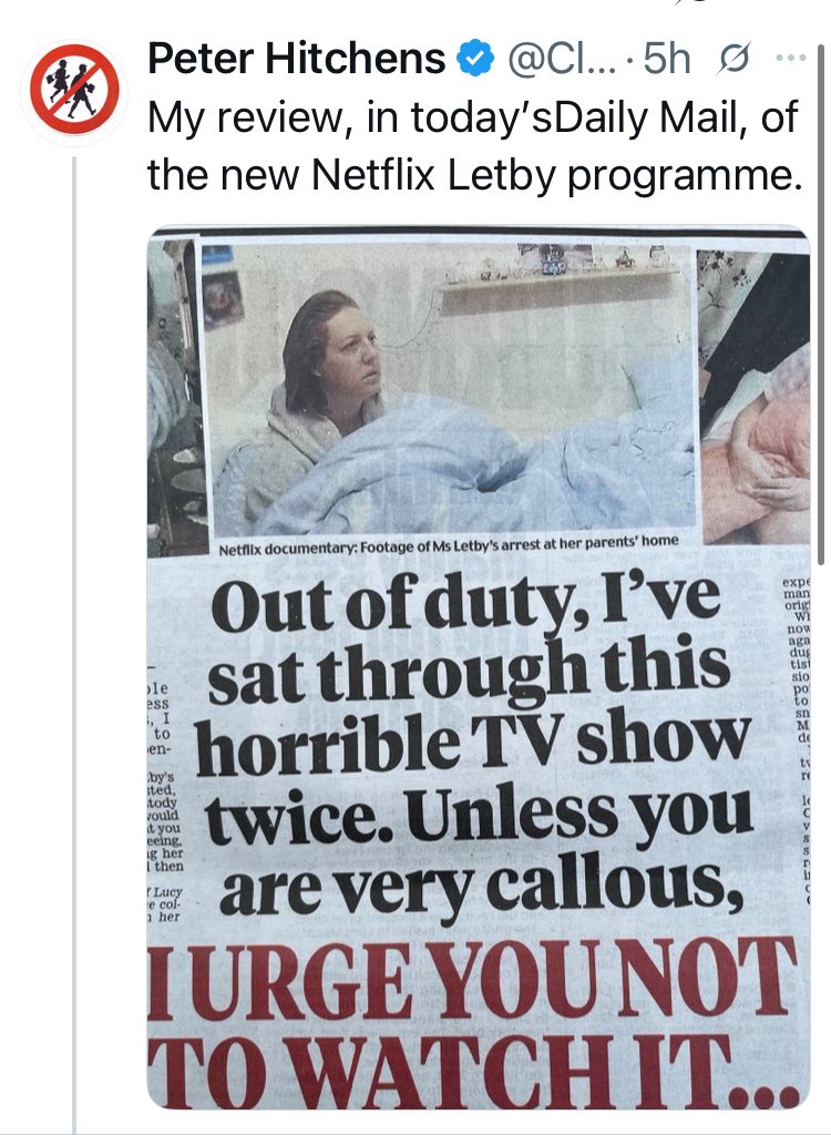 >>218997369NTA but all the prominent Letby supporters like Hitchens, Davis and Dorries are telling people not to watch it, so it must really make her look bad.